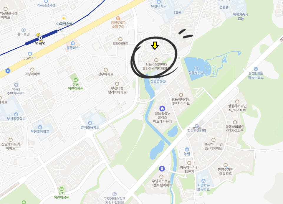 | 법정동주소 | 서울특별시 구로구 항동 233 서울수목원현대홈타운스위트 | 도로명주소 | 서울특별시 구로구 연동로13길 25 |